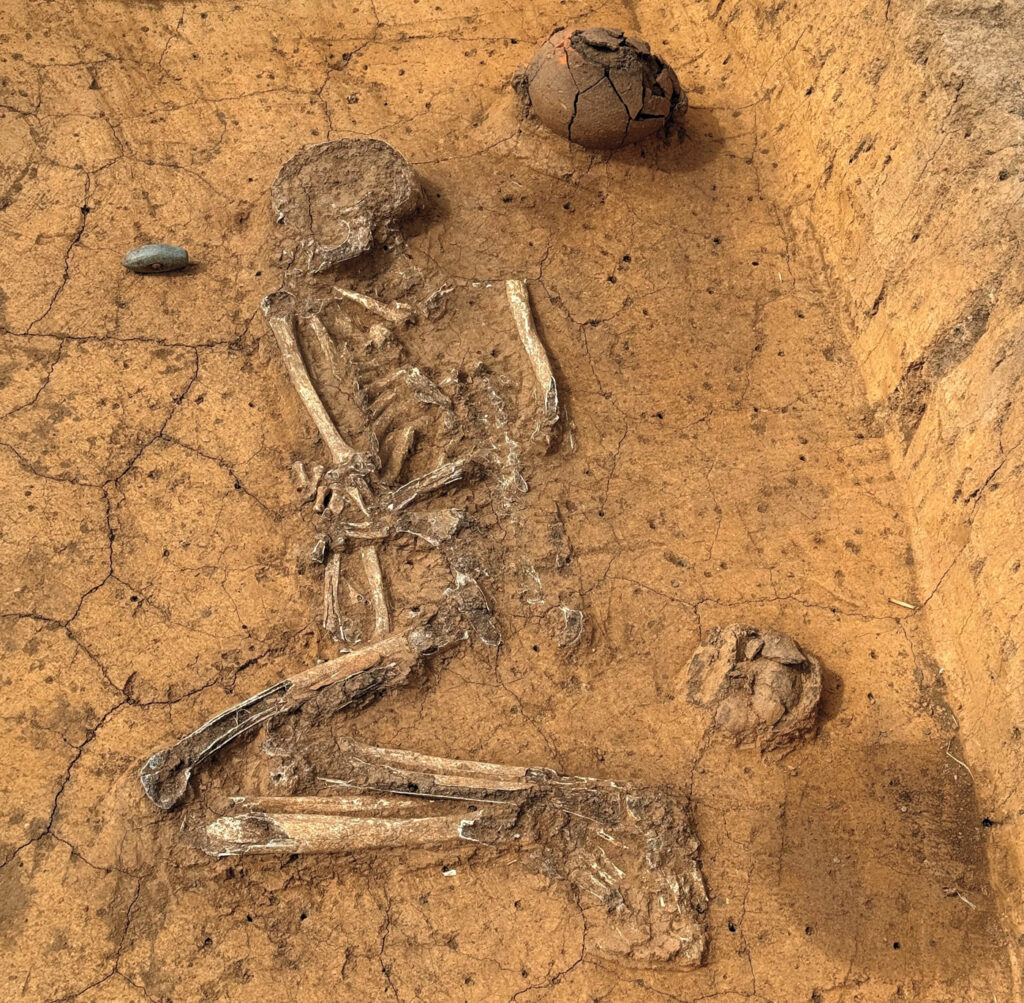 A decorated bag used to carry something particular, or for a special occasion such as a night on the town, is often used to signal wealth and status. This seems to have been true as well for members of the Corded Ware culture, which spread throughout Europe in the third millennium b.c. During installation of a power line in the eastern German town of Krauschwitz, archaeologists discovered 15 Corded Ware burials of men and women interred with distinct sorts of artifacts. “People in this period differentiated men from women by including certain types of objects, such as axes for men and jewelry for women, in their graves,” says archaeologist Oliver Dietrich of the State Office for Heritage Management and Archaeology Saxony-Anhalt.