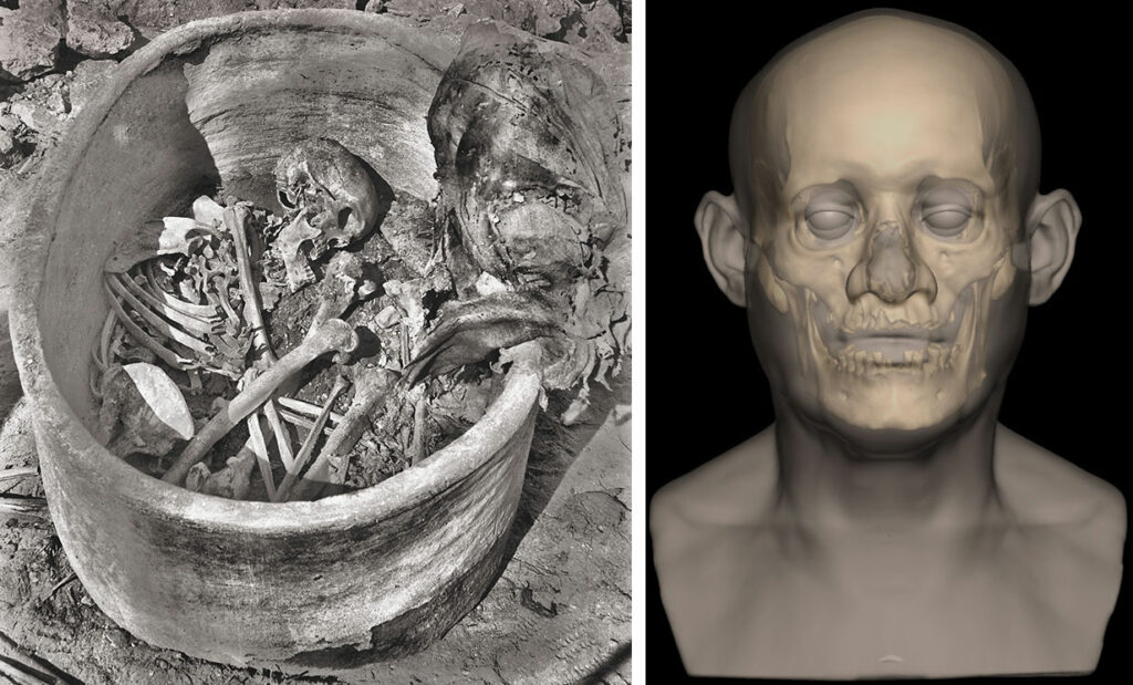 Until now, the earliest Egyptians to have even part of their DNA sequenced were three people who lived between 787 and 544 b.c. A team including geneticist Adeline Morez Jacobs of Liverpool John Moores University has pushed that record back thousands of years and sequenced the complete genome of a man who lived as early as 2855 b.c., during the first days of the Egyptian dynasties. Morez’s team analyzed the man’s remains, which were discovered in 1902 buried in a large pottery vessel inside a rock-cut tomb at the site of Nuwayrat, 170 miles south of Cairo.