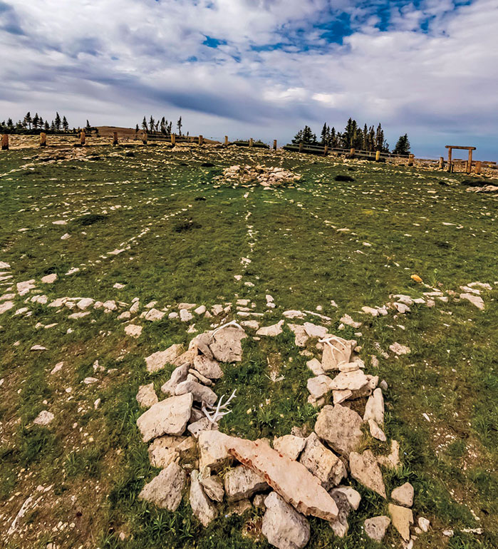 Perched almost 9,700 feet above sea level on Medicine Mountain in Wyoming’s Bighorn Range, the Medicine Wheel is an 80-foot-diameter circular structure made from limestone boulders. Twenty-eight spokes radiate from a central cairn, and six additional cairns are positioned around the wheel’s perimeter. While more than 100 similar circular stone monuments have been found throughout the Rocky Mountains in the United States and Canada, the Medicine Wheel is the best preserved and among the large