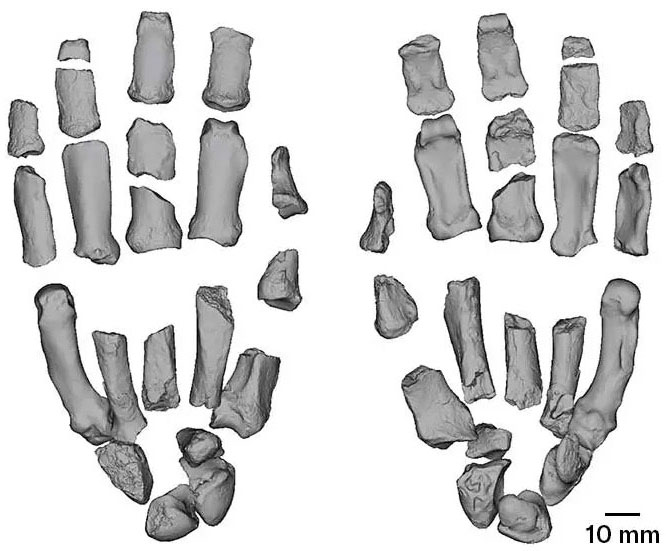 STONY BROOK, NEW YORK—According to a Science News report, a study of hand and wrist bones belonging to Paranthropus boisei by paleoanthropologist Carrie Mongle of Stony Brook University and her colleagues suggests that this 1.5 million-year-old hominid may have had a human-like grip, capable of making basic tools for cutting and pounding. The fossils in the study, in addition to skull fragments, jaw pieces, and teeth, were discovered near Kenya’s Lake Turkana in 2019 and 2021. Mongle explained that the individual’s thumb and fingers would have been able to make a human-like pinching movement, while gorilla-like traits observed in the fossils suggest that P. boisei also had a powerful grip useful for manipulating tough edible plants. The fingers and toes, of P. boisei, however, were not curved like those of modern apes who climb trees. It is not clear how the hominid walked, added team member Thomas Cody Prang of Washington University in St. Louis. “P. boisei could bend its big toe upward while walking, which is an important motion that the human foot uses when pushing off the ground,” he said. Yet the P. boisei toe was shorter than that of modern humans, indicating that its push-off motion while walking was less efficient, he said. Go to Nature to read the scholarly paper exploring this research. To read about 1.5 million-year-old tools from Tanzania, go to "The Bone Toolkit."